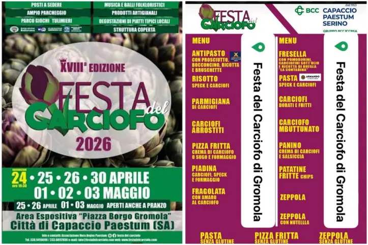 Torna a Capaccio Paestum uno degli appuntamenti più attesi della primavera campana: la Festa del Carciofo IGP di Paestum, giunta alla sua XVIII edizione, in programma dal 24 aprile al 3 maggio 2026.