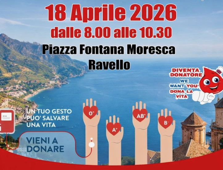 Una mattinata dedicata alla solidarietà e alla sensibilizzazione sul tema della donazione del sangue. È in programma per sabato 18 aprile, a piazza Fontana Moresca, un nuovo appuntamento promosso dal Comune di Ravello in collaborazione con la delegazione comunale di Salerno dell’Avis, l’Associazione Volontari Italiani Sangue.