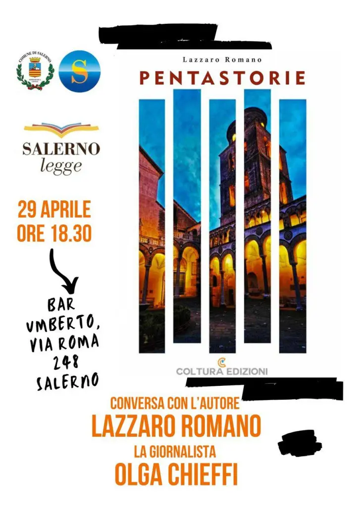 Salerno Legge presenta “Pentastorie” di Lazzaro Romano: appuntamento mercoledì 29 aprile, alle ore 18:30, presso il Bar Umberto in via Roma 248 a Salerno.